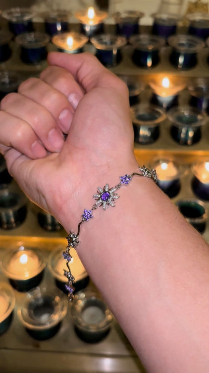 The Perplexy Bracelet features premium handset diamond simulants set in a gold-plated base metal. It's hypoallergenic and nickel-free for sensitive skin.